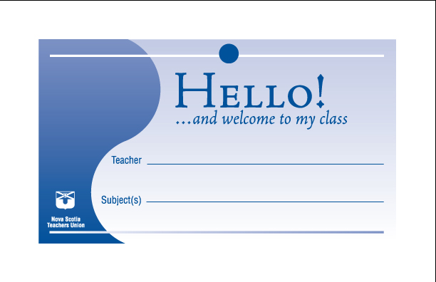 A great way to introduce yourself to students and families. Purse- or wallet-sized with space for your school's phone and fax numbers. Includes an excerpt from the NSTU Code of Ethics: Teacher and Pupil on the back. Provided in class sets.