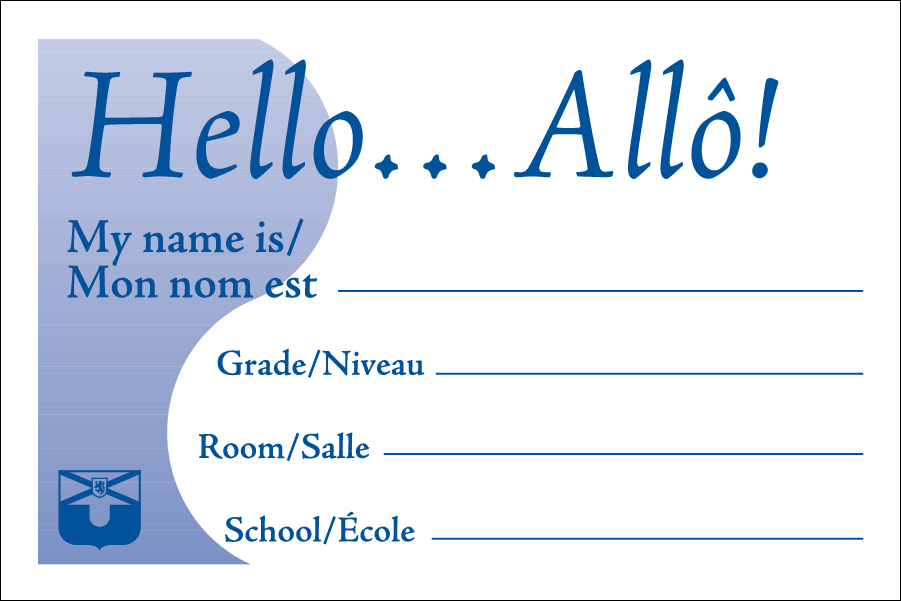 Perfect for the start of school or off-site class trips. Easy peel-and-stick format, with English and French on each tag.